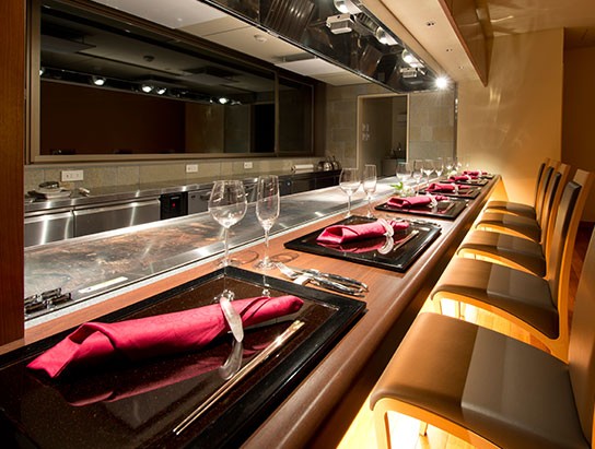 目の前で仕上げる「鉄板焼き」の食事処があります。