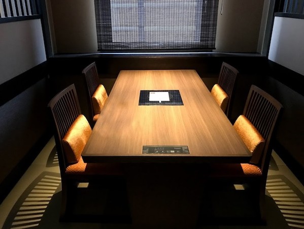夕食、朝食時のテーブル席、お座敷への案内