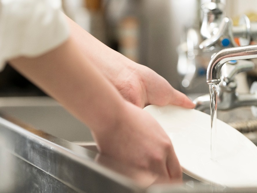 朝食時に使用された食器、調理器具の洗浄/食器の戻し、整頓