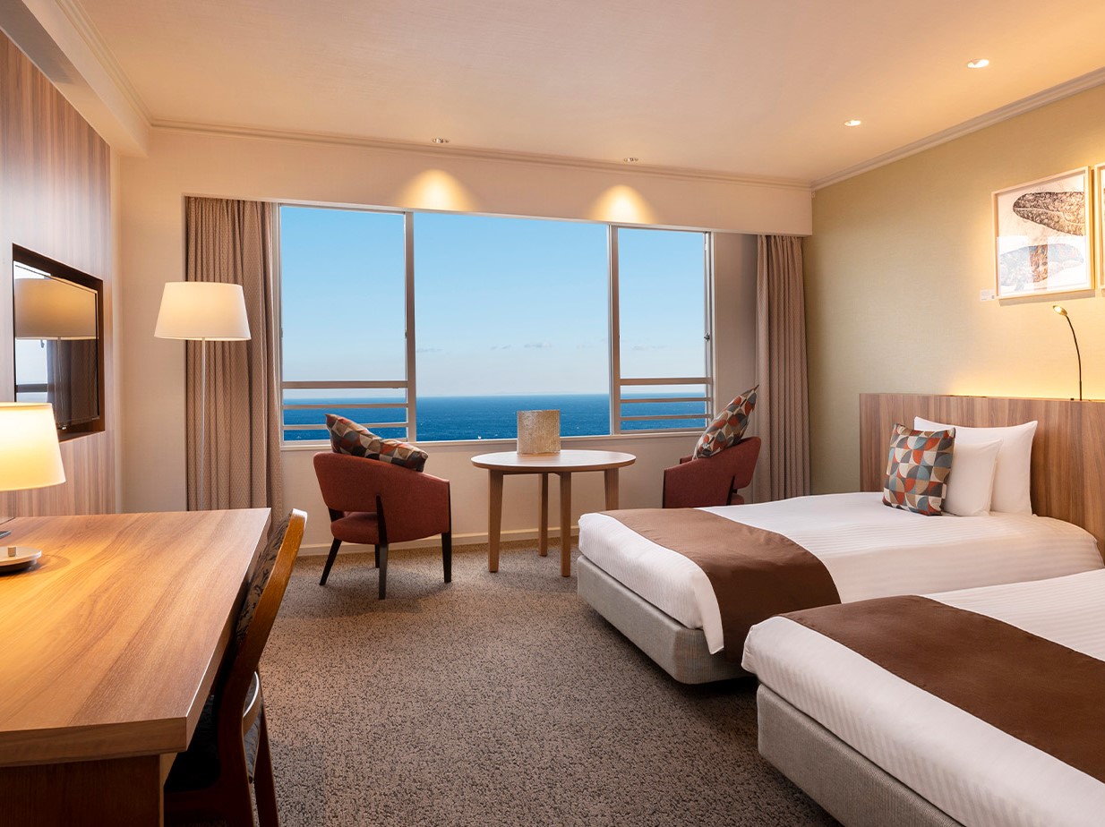 海沿いのホテルです。日々、海を眺めながら非日常を感じることができます。