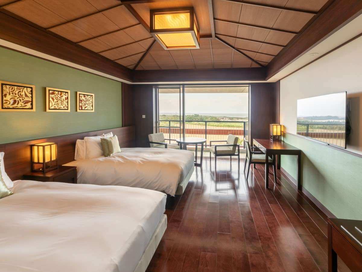 海に囲まれた13万平米という広大な敷地にあるすべての客室はオーシャンフロント。