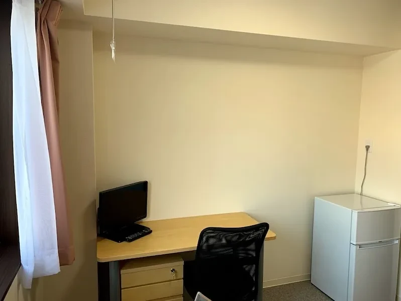 寮は旅館から徒歩7分、ユニットバス&無料wifiつきの好条件です。