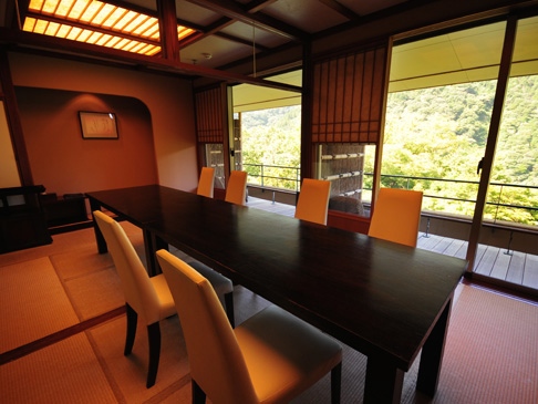 宮ノ下駅の真下に位置する高級旅館。谷沿いに造られていて表どおりから隠れるようにひっそりと建っている、雰囲気のある旅館です。