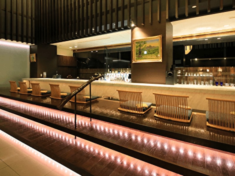 入り口を抜けると天井が吹き抜けになったロビーに設えた足湯カフェ&バーなどがあります。