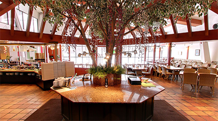 緑豊かな森の中にある広大な温泉リゾート。